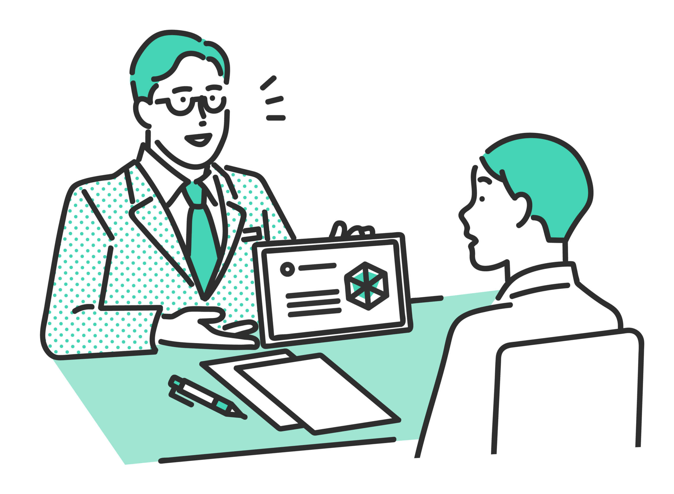 営業担当者が商談時にタブレットで商品を紹介したり、顧客に詳細情報を案内するなど、リアル営業をサポートします。
