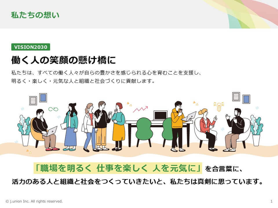 労働組合へのサービスを行う企業様の営業用資料を制作しました。労働組合や働く人々への熱い想いをヒアリングし、その言葉を起点に構成を再設計。理念からアプリによる解決策までを一貫して訴求し、想いが伝わる営業資料を制作しました。